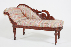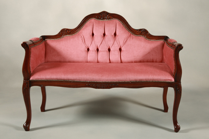 VE-1252D(リペア品:現品1台限り)¥246,000-肘掛と背もたれが付いた成人用の長椅子で、振袖の撮影やご家族での記念撮影等の撮影に最適です。展示会で展示した物で、左の肘掛と脚のキズをリペアしてあります。 |
