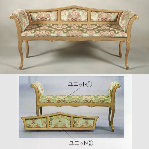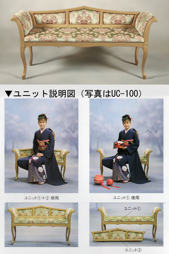 UC-112(現品1台限り)¥140,000-背もたれが取り外し可能なユニットタイプの長椅子です。成人振袖・記念撮影等各種撮影に使用出来ます。 |