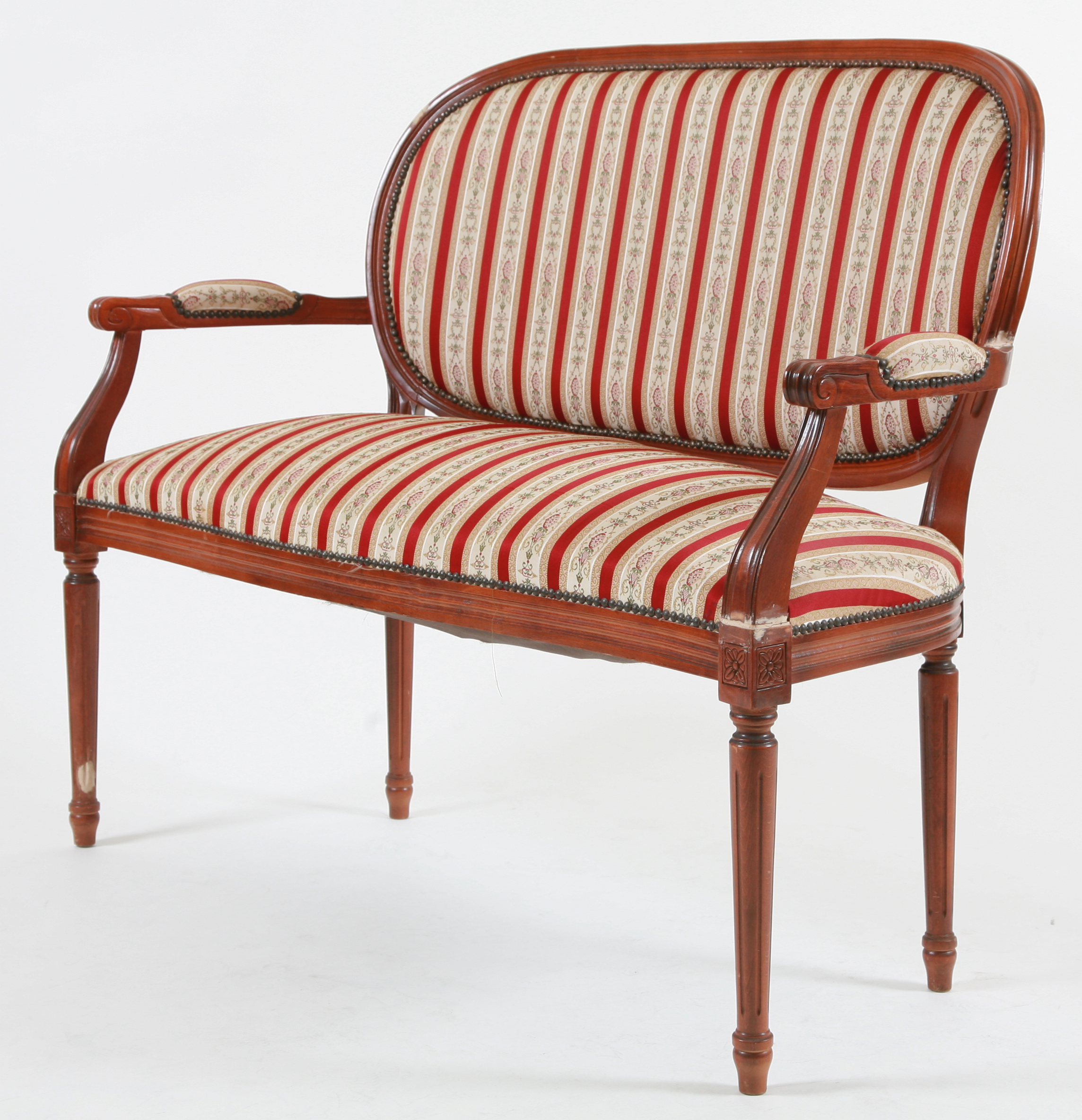 FGA-52(中古品:現品1台限り)¥84,000-成人用の背もたれ・両袖付けの長椅子です。成人振袖・記念撮影等で落ち着きのある撮影になります。袖の布地部分が若干毛羽立っていますが、撮影には支障ないと思われます。 |