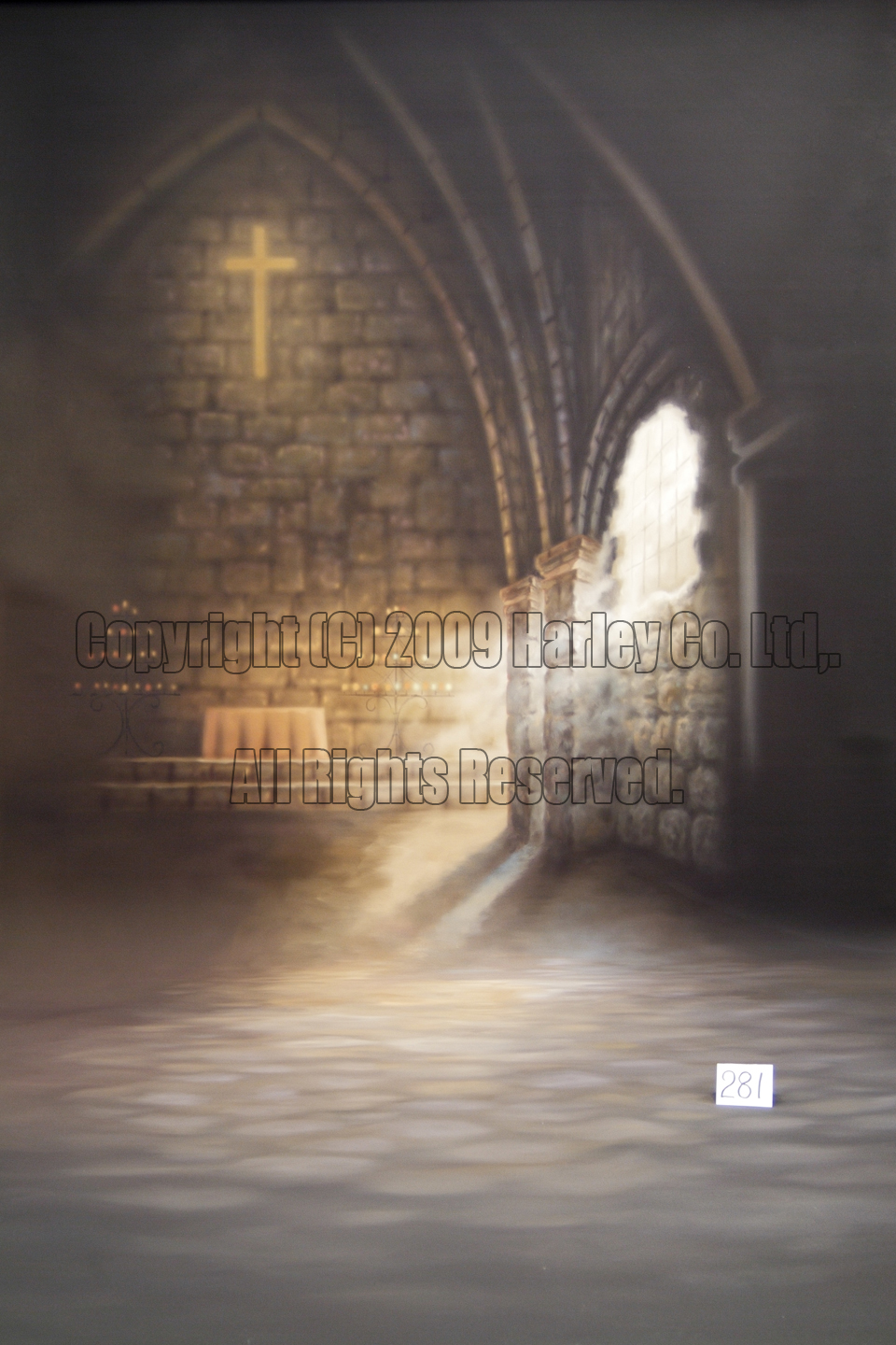 絵バック 3m×7m No.0281¥396,000チャペルをイメージした絵バックです。洋装のブライダルやドレスでの撮影に最適です。撮影にはほとんど問題ないですが、足元に若干汚れがあります。 |