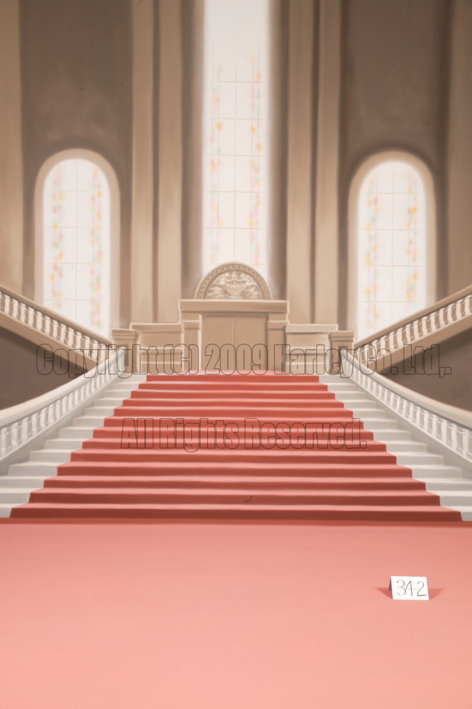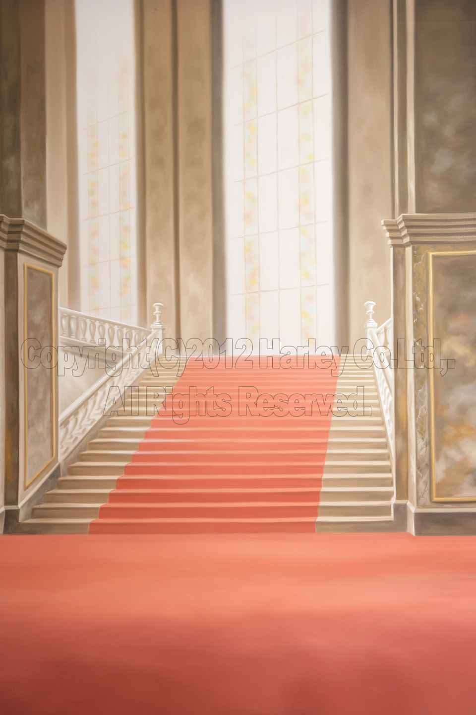 殿内の大階段をあしらったデザイン。ホテルや教会での、インドアシチュエーション撮影の雰囲気を作り出します。七五三、成人振袖、和洋装ブライダル等、豪