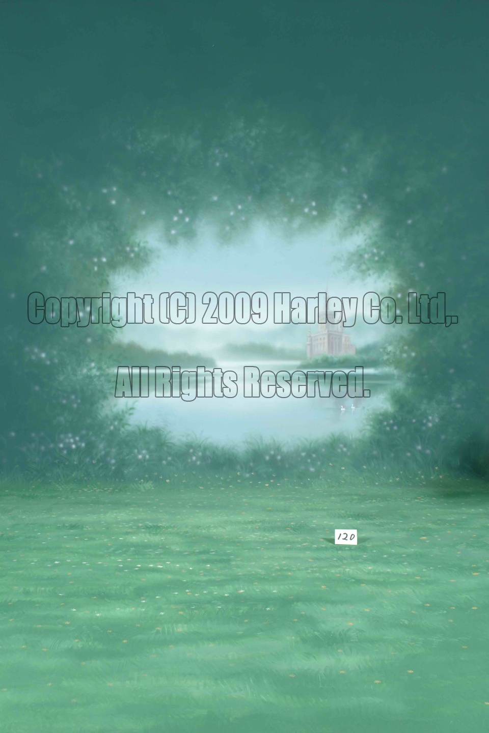 絵バック 3×7m No.0120¥330,000ファンタジーな雰囲気を演出した絵バック。森の中から湖畔に建つお城が見えます。キッズやドレス、七五三、もちろんブライダルにも最適です。