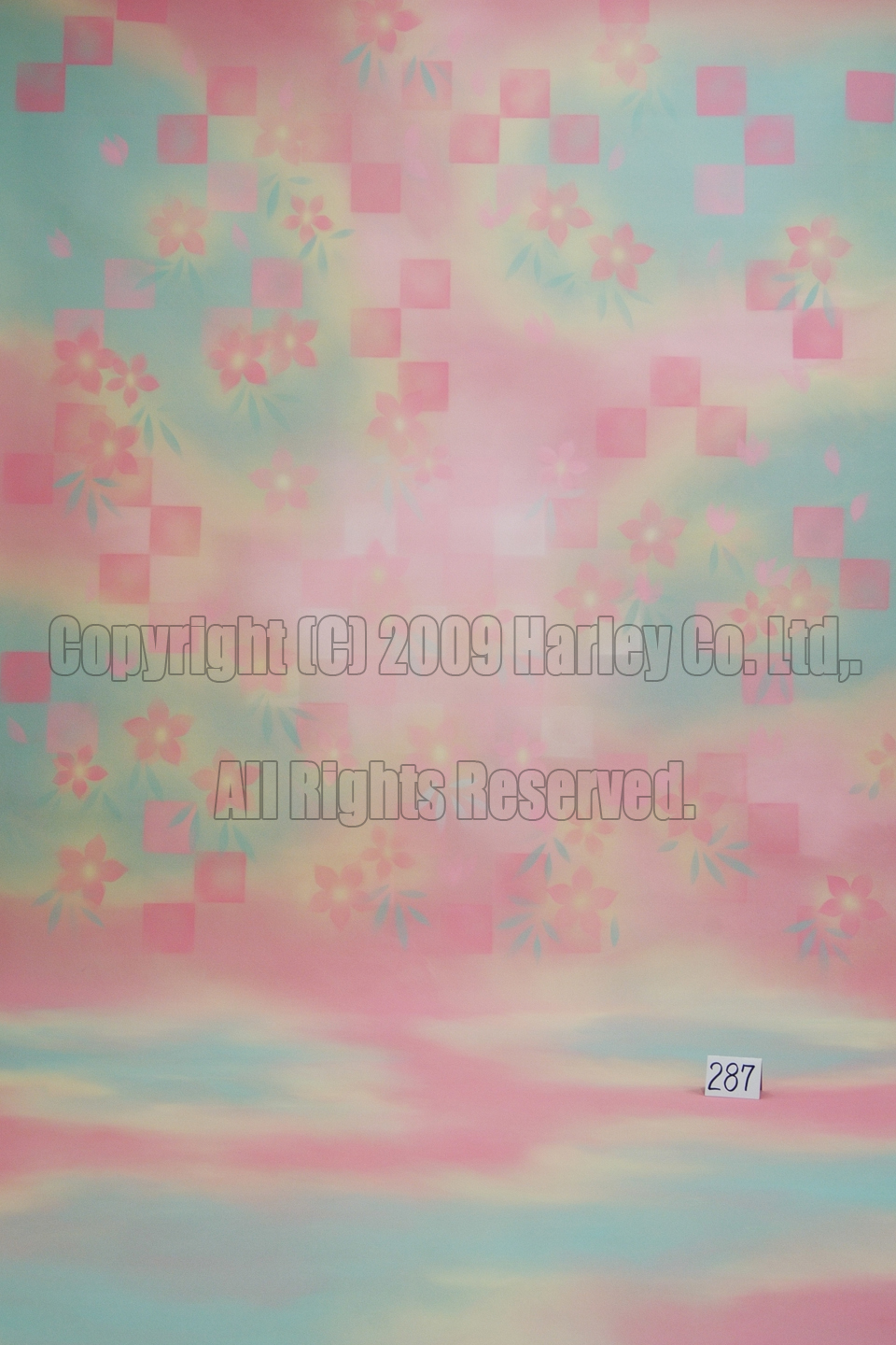 ヨーロッパ調バック 3×7m No.0287¥259,000ピンクと水色を基調としたパステルカラーのデザイン。背部には花やブロックが全体にちらしてあります。ジャンルを選ばず撮影が出来ます。