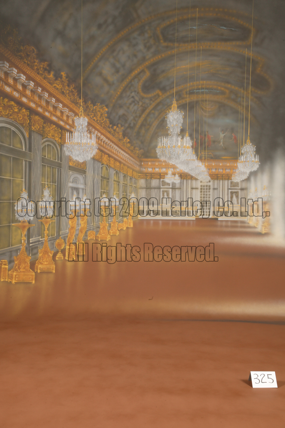 絵バック 3×7m No.0325¥495,000中世ヨーロッパの宮殿内をイメージしたデザイン。ドレス・振袖・和洋婚礼など、多店舗との差別化を図る豪華さで、人気のスクリーンです。幅広いジャンルで撮影出来ます。