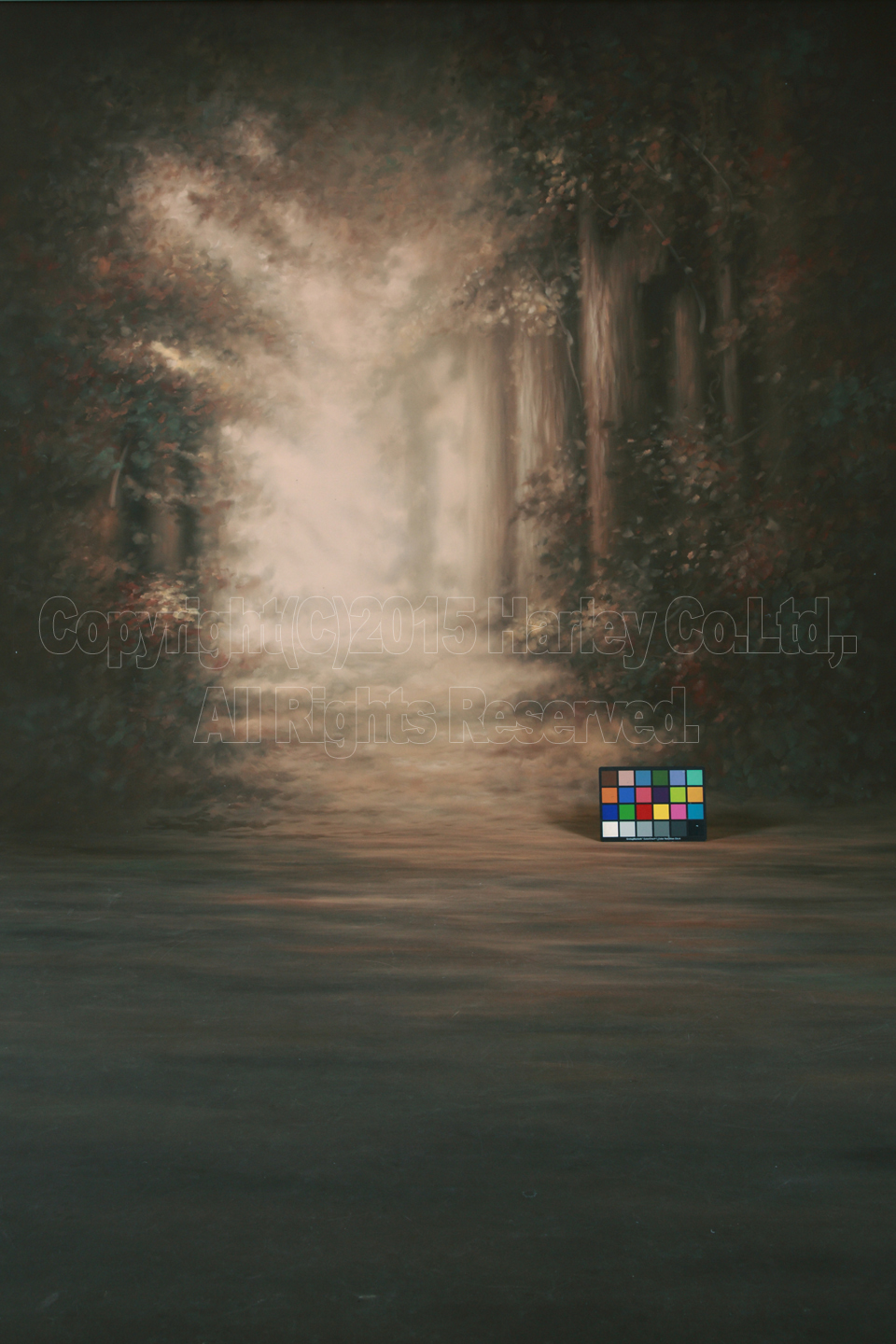 絵バック 3×6.5m No.0449¥330,000茶色をベースとした、森からの木漏れ日をあしらったデザインで、落ち着いた雰囲気の撮影に向いています。足元をリペアしてあります。 |