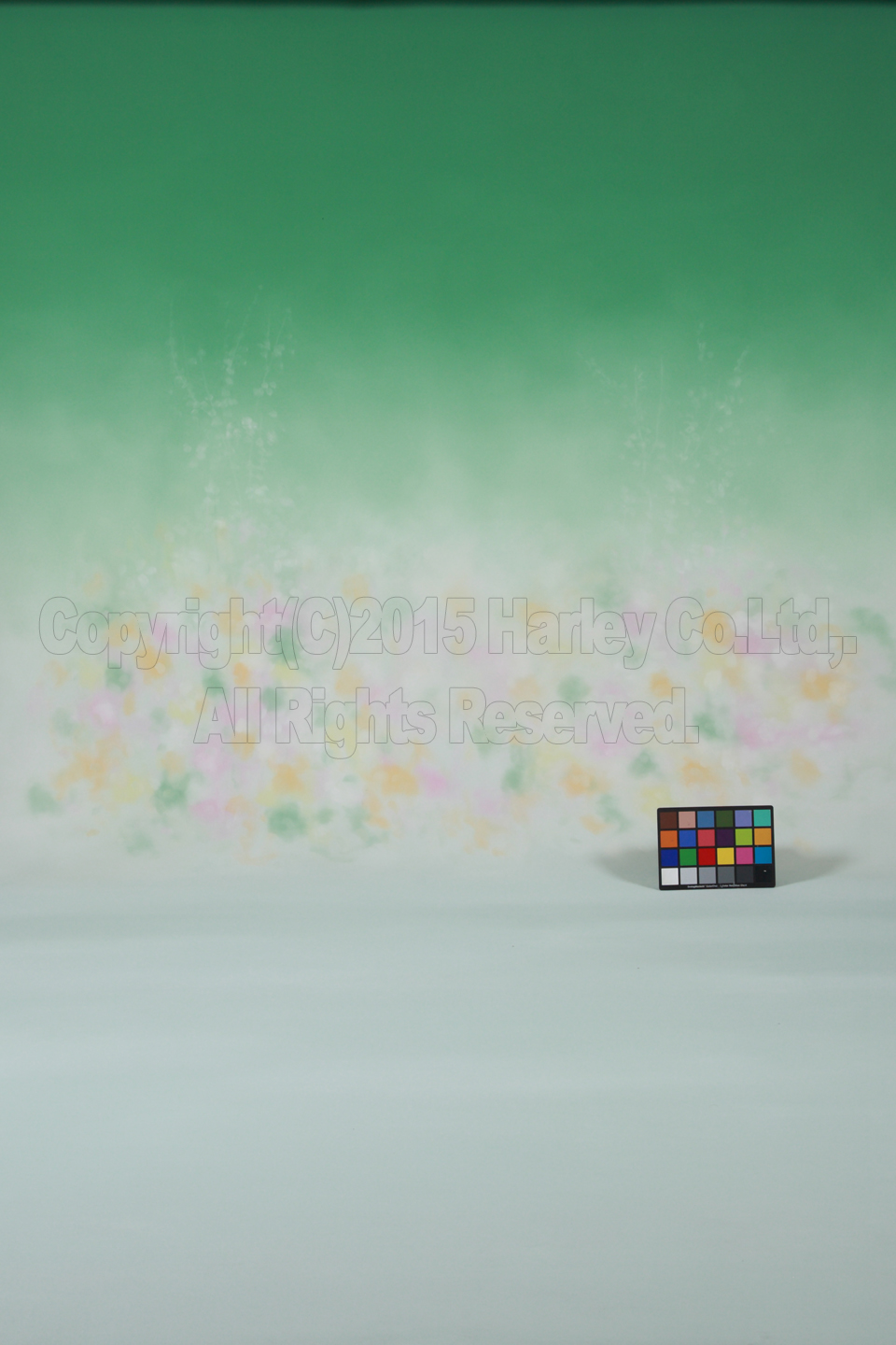 パターンバック 3×7m No.0402¥221,000グリーンを基調とし、中に白のボカシが入ったパターン柄です。明るめで標準的なぼかし柄なので、ジャンルを選ばず撮影が出来ます。 |